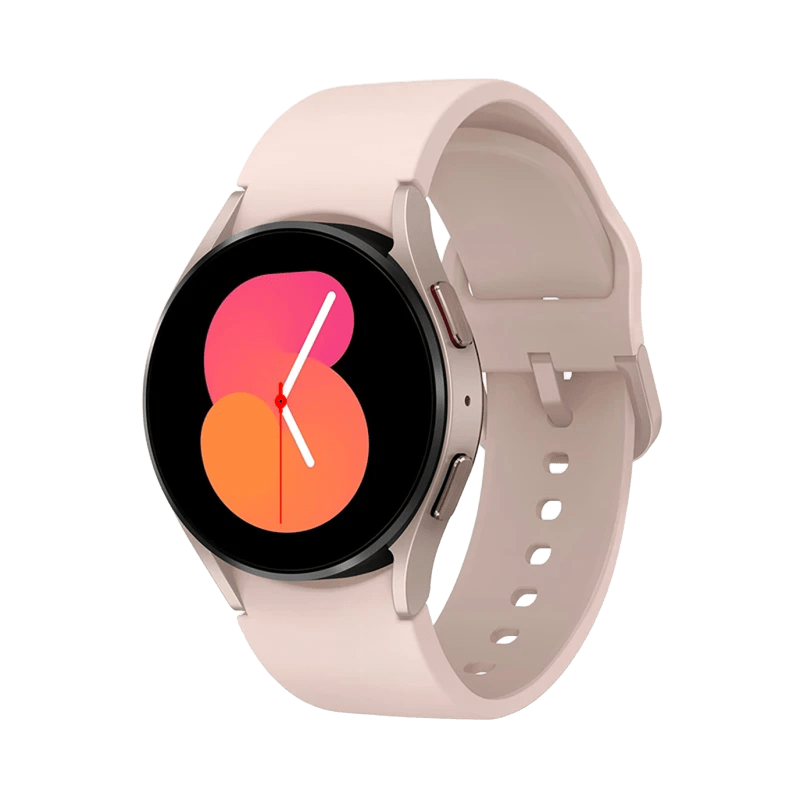 طراحی Galaxy Watch 5 سامسونگ، تلفیقی از سادگی و لوکس بودن است. این ساعت با قاب آلومینیومی و ظاهر شیک، جلوهای مدرن و جذاب دارد و به خوبی با انواع سبکهای پوشش و سلیقههای کاربران هماهنگ میشود. ابعاد قاب این ساعت ۹.۸×۳۹.۳×۴۰.۴ میلیمتر و وزن آن ۲۸.۷ گرم است. فرم صفحه ساعت دایرهای است که باعث شده این ساعت شباهت زیادی به ساعتهای کلاسیک داشته باشد و به همین خاطر میتوانید به راحتی آن را با کلیه لباسهای خودتان ست کنید. همچنین مقاومت آن در برابر آب و ضربه، امکان استفاده در فعالیتهای ورزشی و تفریحی را فراهم میکند. از نظر کیفیت ساخت، Galaxy Watch 5 از کیفیت بالایی برخوردار است و میتوانید با خیال راحت سالها از آن استفاده کنید. این محصول حتی در صورت سقوط یا برخورد با سطوح سخت، بهندرت آسیب میبیند. علاوه بر این، طراحی ماژولار آن، امکان تعویض و ارتقاء برخی قطعات را فراهم میکند. یکی دیگر از ویژگیهای جالب توجه در طراحی Galaxy Watch 5، بهرهگیری از مواد با کیفیت مرغوب است. بهطور مثال، از شیشهای معدنی در قاب ساعت استفاده شده است که موجب افزایش استحکام و مقاومت آن میشود. یکی از مهمترین ویژگیهای ساعت هوشمند Galaxy Watch 5، نمایشگر باکیفیت و جذاب آن است. این ساعت مجهز به نمایشگر AMOLED با اندازه 1.2 اینچ است که رزولوشن 396*396 پیکسل را ارائه میدهد. این ویژگی باعث میشود که محتوا با وضوح بالا و جزئیات دقیق نمایش داده شوند. همچنین تراکم پیکسلی این صفحه نمایش هم ۳۳۰ پیکسل بر هر اینچ است.